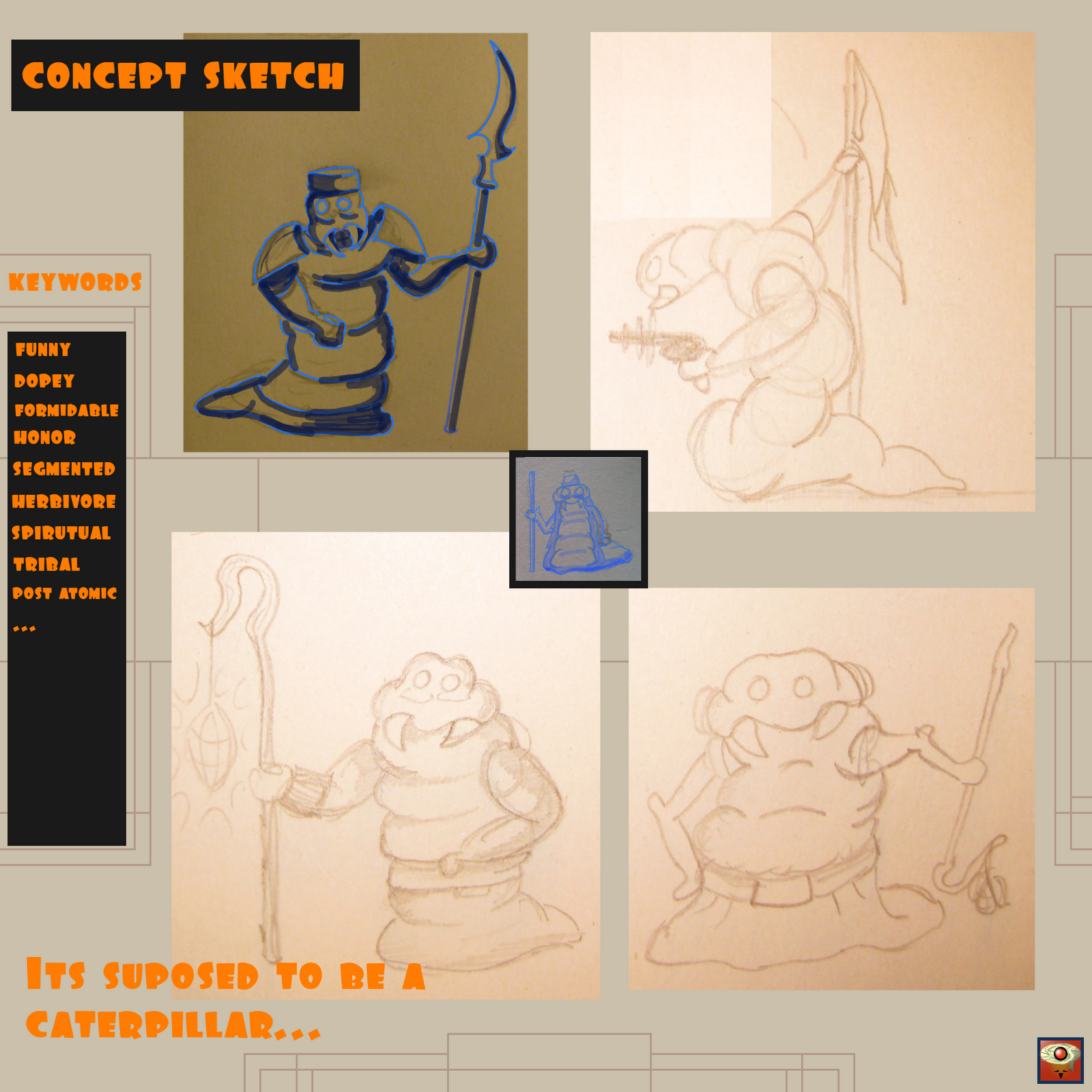 As for a caterpillar like model, I imagine some same coloured blobs representing bodysegments, wiggling back and forth while it walks.